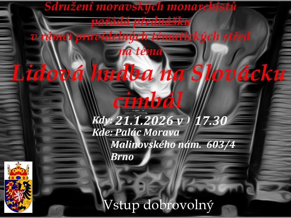22. 2. 2026 Mezinárodní den průvodců v Olomouci![]() 21. 2. 2026 Pouť k hrobu císařovny Zity do Vídně![]() 18. 2. 2026 Pozvánka na únorovou tematickou středu Vážení příznivci,dovolte mi, abych Vás jménem Sdružení moravských monarchistů pozval na naší tradiční "Tématickou středu" tentokrát s názvem "Karel Havlíček Borovský v Brixenu" dozvíte se něco o tom, jak se chovalo "mocnářství" k tomuto novináři, spisovateli, o tom jaký měl těžký život ve "vyhnanství" (nejen) ![]() J iž proběhlé akce