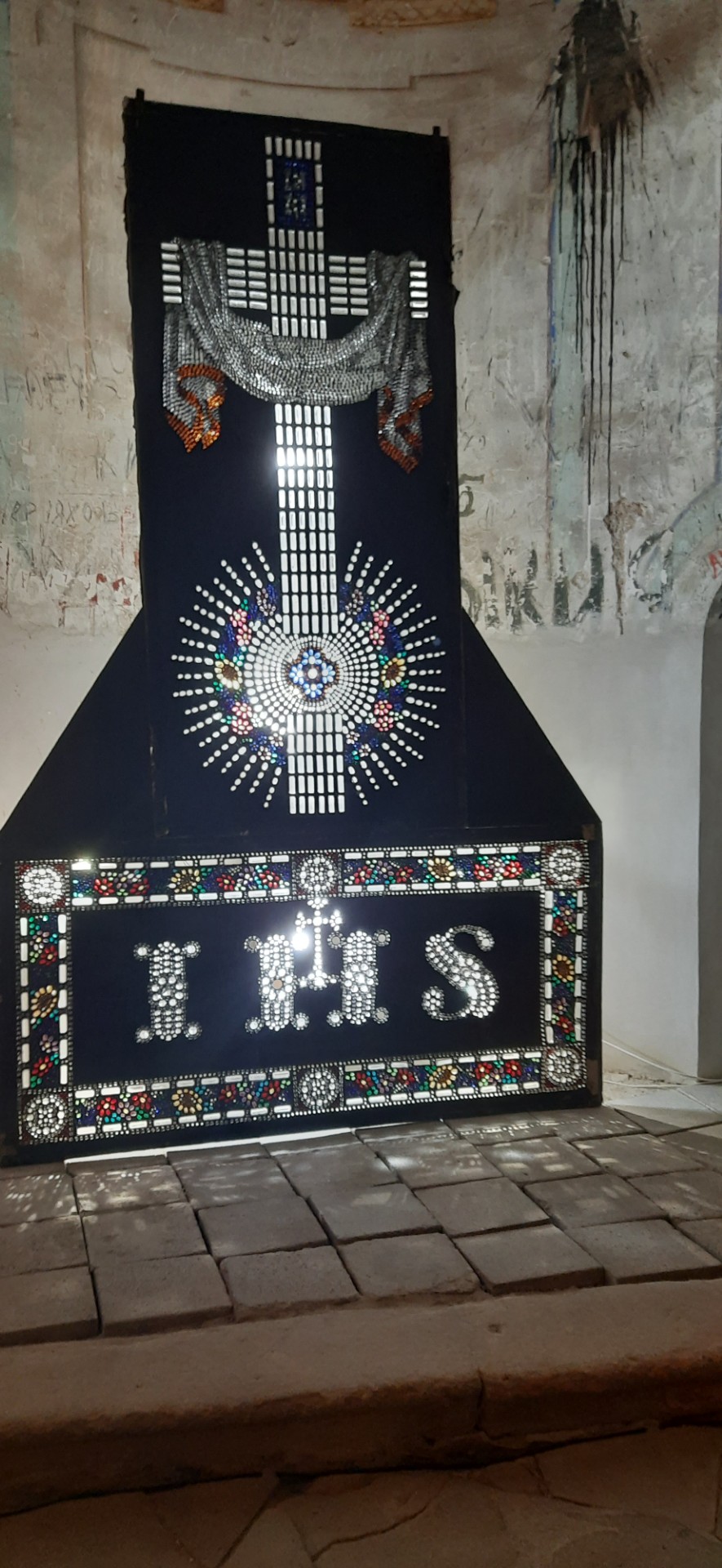 Hlavními exponáty výstavy ve Staré Vodě jsou dva rozměrné skládací oltáře Božího hrobu, které doplňují panely jiných mozaikových oltářů, mající odlišnou ornamentiku. Výstavu doplňuje miniatura Božího hrobu, pocházející z kostela sv. Isidora v Horní Loděnici, určená pravděpodobně k soukromé devoci.